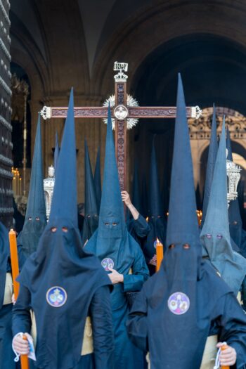 En el interior del templo catedralicio, la Coral de la Hermandad puso voz al recogimiento, acompañando las lecturas litúrgicas y contribuyendo a un ambiente de profunda espiritualidad. A las 0.47 horas, con algo más de media hora de retraso sobre el horario previsto, el paso de palio abandonaba la Catedral por la Puerta de los Palos.