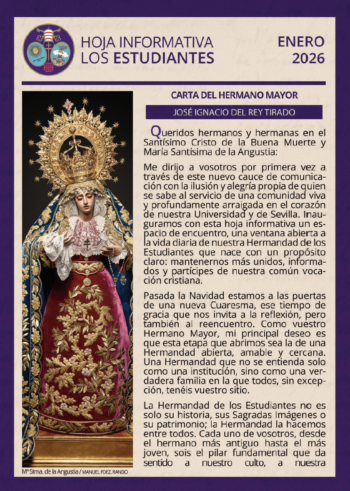 La Hermandad de Los Estudiantes informa a todos sus hermanos que, a partir de esta misma semana, comenzarán a recibir en sus domicilios la hoja informativa editada por la Corporación.